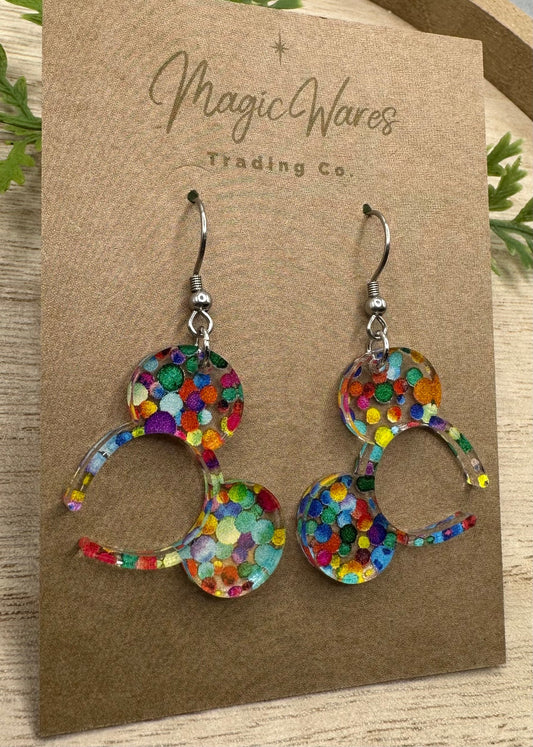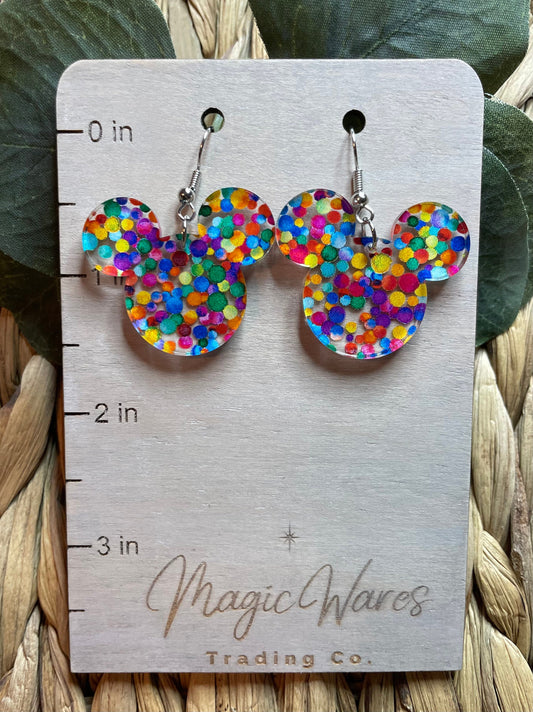 Adventure Mouse UP inspire Rainbow Dots Pattern Acrylic, Mouse head dangle earring UP Earrings
