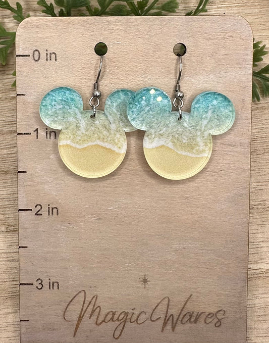 Beach vibes, Mouse head Laser cut Crystal Acrylic Earrings, Made to order, Laser Engraved, Glowforge Earrings