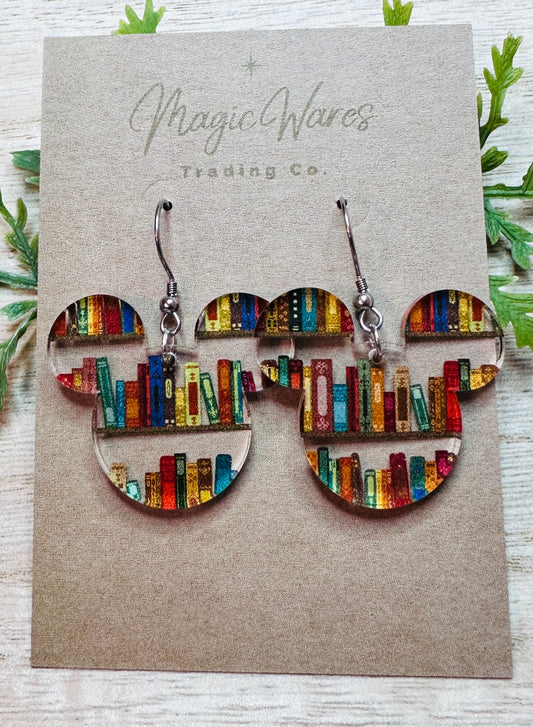 Beasts Library, Laser Cut Dangle Earrings , Bookshelf patterned Crystal Acrylic Earrings, Dangle Earrings, Belle inspired earrings