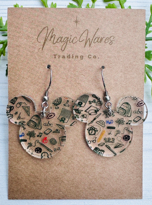 Back to School Mouse head Laser cut School Patterned Crystal Acrylic Earrings Back to school earrings gift for teacher