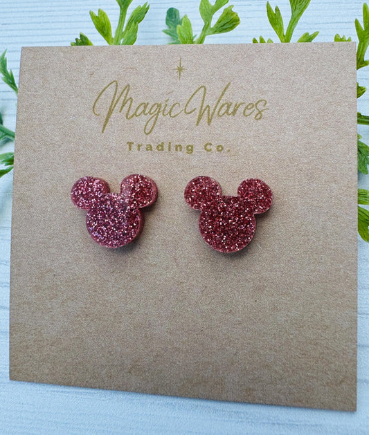 Antique Rose Glitter Stud Earrings, Rose Glitter Laser Cut Post Earrings Pierced Earlobe Glitter Post earrings