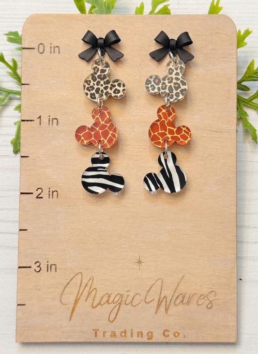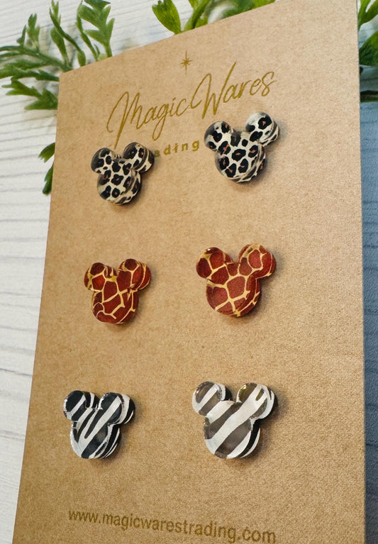 Animal Kingdom Mouse Stud Trio, Small stud Earrings Animal Print Laser Cut Crystal Acrylic, Lightweight Hypoallergenic Post Earrings