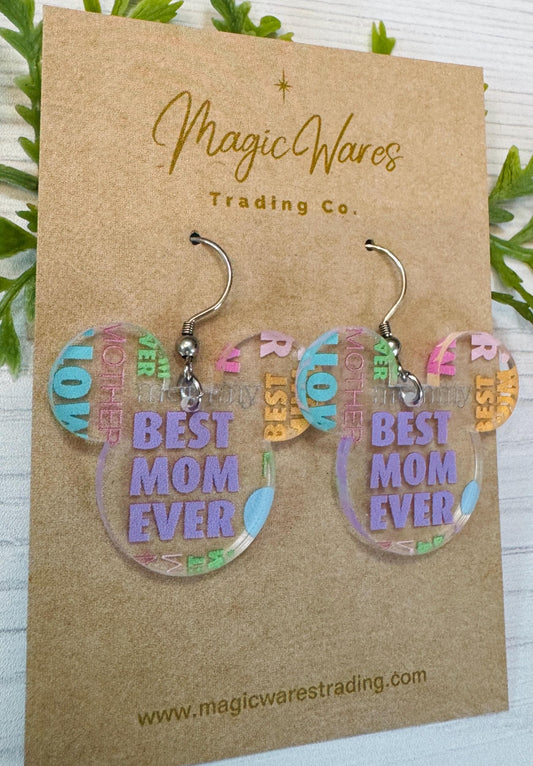 Best Mom Ever Mouse Head shaped Acrylic Earrings, Mothers Day pattern Acrylic Dangle Earrings, Mothers Day Earrings, Gifts for Mom
