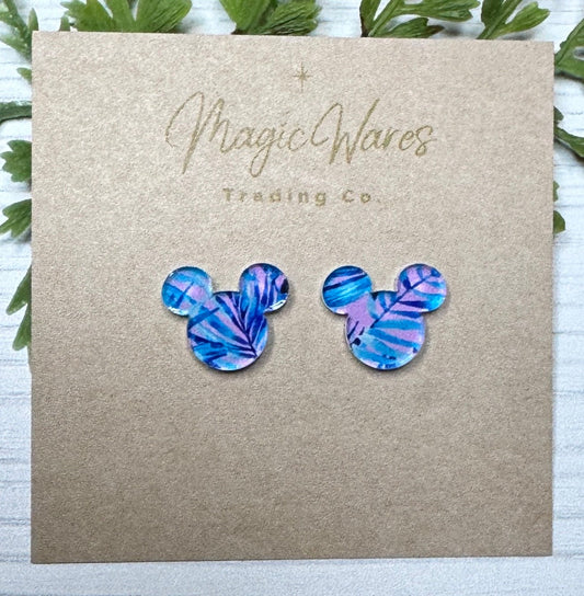 Preppy Blue Tropical Mouse head Laser cut Crystal Acrylic Earrings, Lilly inspired Pink and Blue Tropical Acrylic earrings lightweight