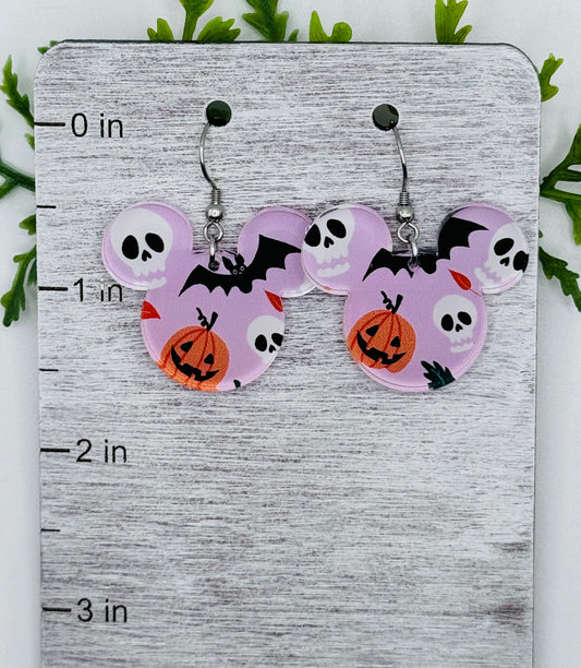 Pink Halloween Mouse Laser cut Dangle Earrings, Pink Crystal Acrylic Earrings, Halloween earrings, Not so scary Halloween Party earrings