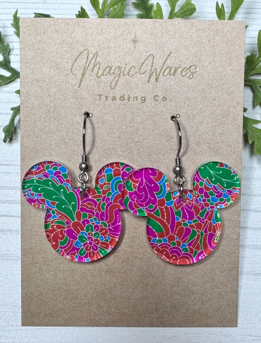 Preppy Bright Floral Mouse head Laser cut Crystal Acrylic Earrings, Lilly inspired Floral Acrylic earrings lightweight hypoallergenic