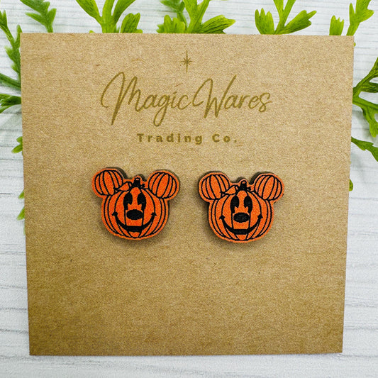Pumpkin Mouse Stud, Laser engraved orange coated black acrylic, Halloween Earrings Not So scary Halloween Party Earrings