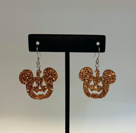 Pumpkin Glitter Mouse Dangle Earrings, Laser cut Pumpkin Spice glitter Acrylic Earrings, Lightweight Acrylic Halloween Pumpkin Earrings