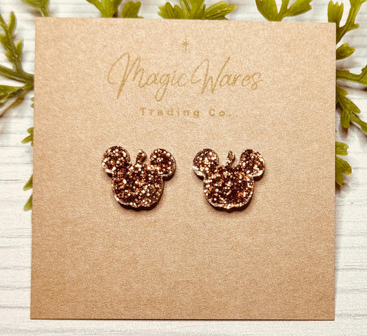 Pumpkin Spice Glitter Stud, Mouse head shaped glitter Post Laser cut Earrings Pierced Earlobe Stainless Steel Post earrings glitter earrings
