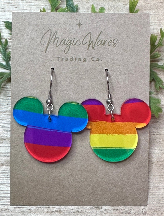 Pride Mouse, Laser cut dangle earrings, Rainbow Stripe Pattern Acrylic, Mouse head dangle earring