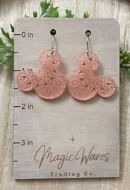 Rose Floral Mouse Earrings, Laser Cut, Pink Floral patterned Crystal Acrylic Earrings, Dangle Earrings Handmade earrings
