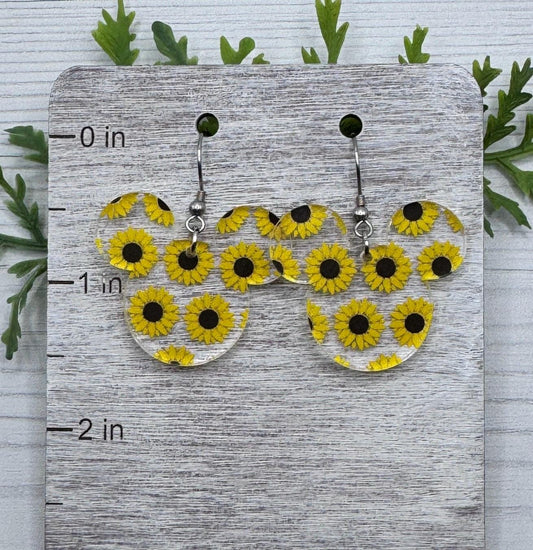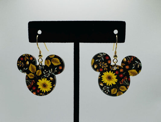 Sunflower Mouse Laser Cut, Sunflower patterned Crystal Acrylic Earrings, Floral Earrings For Fall