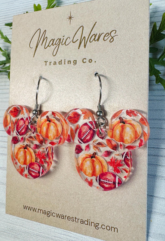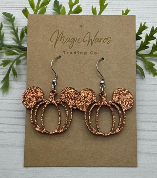 Pumpkin Glitter Mouse Dangle Earrings, Laser cut Pumpkin Spice glitter Acrylic Earrings, Lightweight Acrylic Halloween Pumpkin Earrings