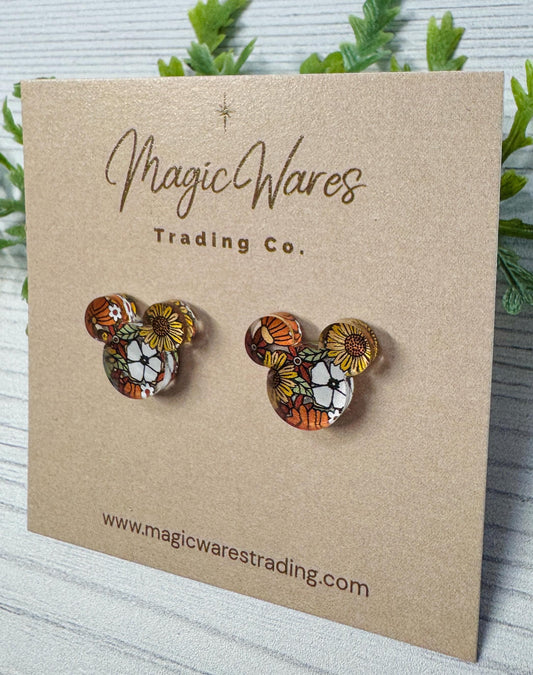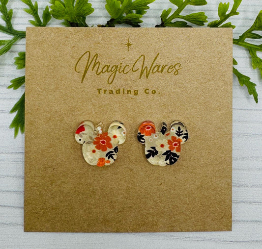 Pumpkin Floral Mouse Stud, Laser cut Floral crystal acrylic stud earrings, Halloween Pumpkin Earrings, Pumpkin stud earrings