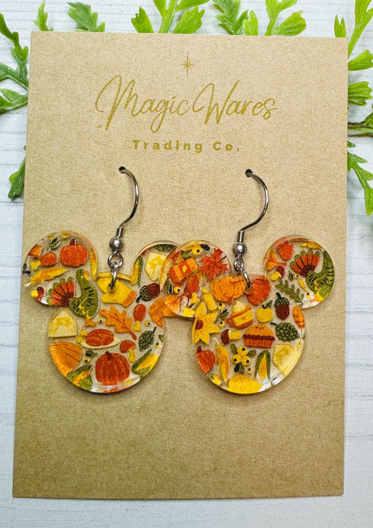 Harvest Mouse head Earrings, Laser Cut Thanksgiving patterned Crystal Acrylic Earrings, Dangle Earrings Fall Earrings