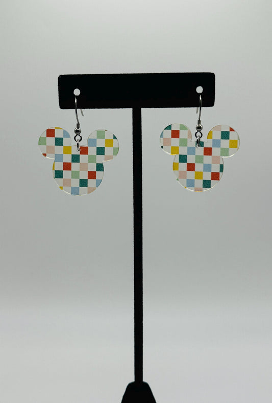 Checkerboard Mouse head Earrings, Laser Cut Neutral Checkerboard patterned Crystal Acrylic Earrings, Fall Earrings