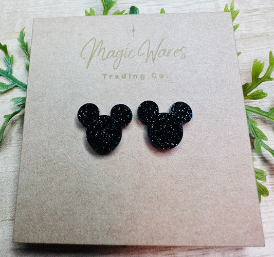 Black Glitter Stud, Laser cut Earrings, Made to order, Laser Engraved, Pierced Earlobe, Stainless Steel, Post earrings