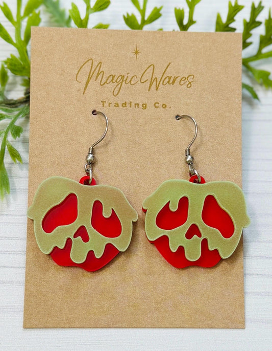 Poison Apple Glow in the Dark Dangle Earring, Snow White inspired Glow Acrylic Earrings, Halloween Earrings Evil Queen earrings