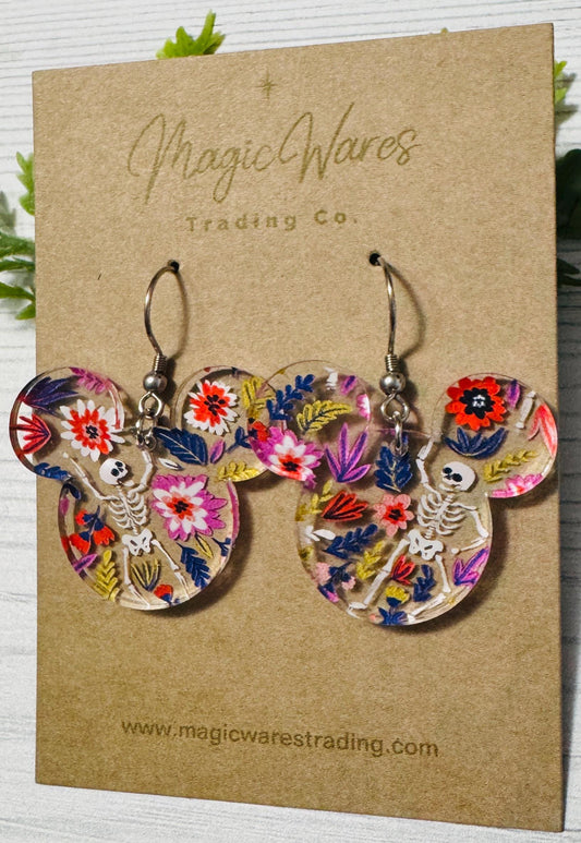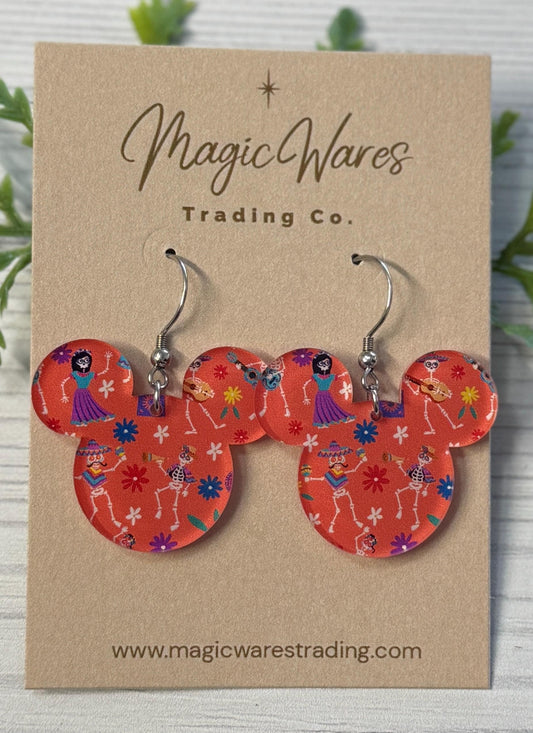 Skeleton Fiesta Mouse head Dangles, Coco inspired Laser cut Acrylic Dangle Earrings, Dia de Los Muertos Celebration Earrings