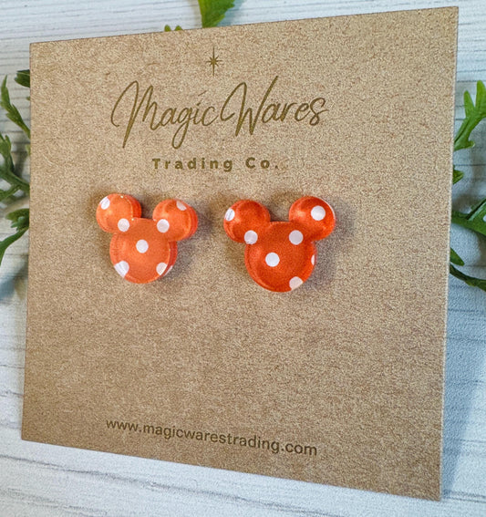 Orange Polka Dot Stud Earring, Orange with white polka dots acrylic laser cut post earrings, Halloween earrings, Halloween party earrings