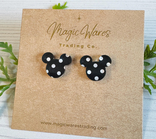 Black Polka Dot Stud Earring, Blackwhite polka dots acrylic laser cut post earrings, Halloween earrings, Halloween party earrings