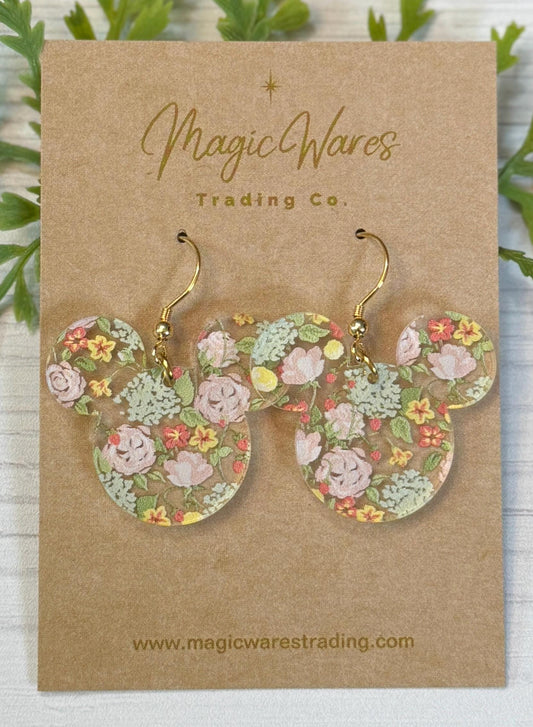 Sweetest Floral Mouse Dangle Earrings, Floral patterned Crystal Acrylic Earrings, Spring Earrings, Gifts for Mom, Flower earrings for spring
