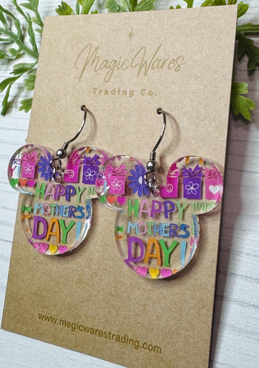 Happy Mothers Day Mouse Head shaped Acrylic Earrings, Mothers Day pattern Acrylic Dangle Earrings, Mothers Day Earrings, Gifts for Mom