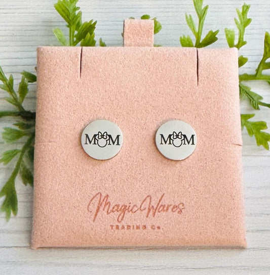 Mom Engraved Stud Earrings, Stainless Steel Post Earrings, Mothers Day Earrings, Engraved Earrings, Gift for Mom