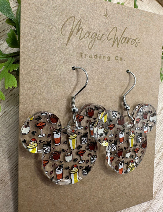 Drink Around The World, Laser Cut Dangle Earring, Christmas Cocktails patterned Crystal Acrylic, Glowforge Earrings
