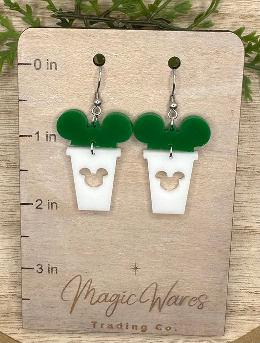 Christmas Red Cup, Coffee cup shaped Laser cut Green and Candy Cane striped Acrylic Earrings Christmas earrings Very Merry Christmas Party