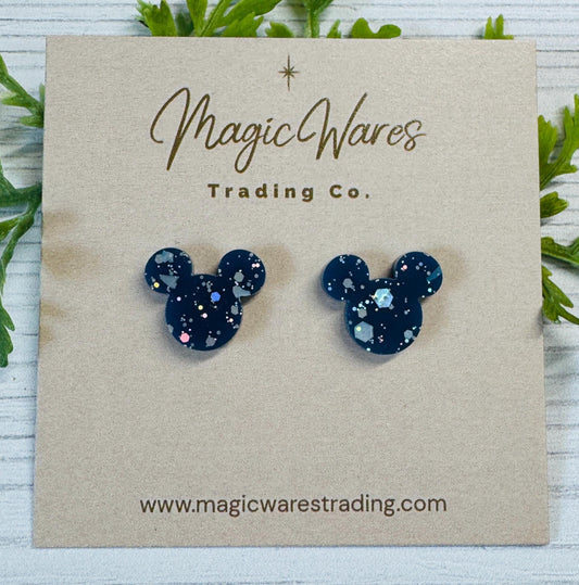 Navy Ice Glitter Mouse Stud Earrings: Laser Cut Acrylic, Clip-ons available