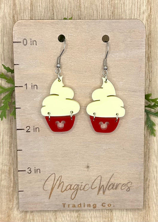 Main St Ice Cream, Mouse ears Ice Cream Cone Laser cut Patterned Crystal Acrylic Earrings, Made to order Glowforge Earrings