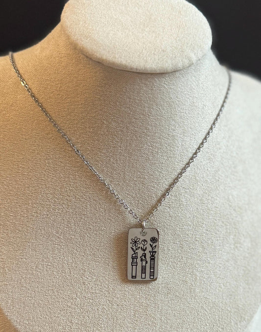 Floral Lightsabers Engraved Stainless Steel Necklace, Silver or Gold Laser Engraved Necklace, Personalized Jewelry Star Wars inspired