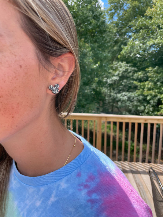 Leopard Minnie Leopard Bow Dangle, Laser cut Black Acrylic Earrings Animal Print Earrings Animal Kingdom inspired earrings