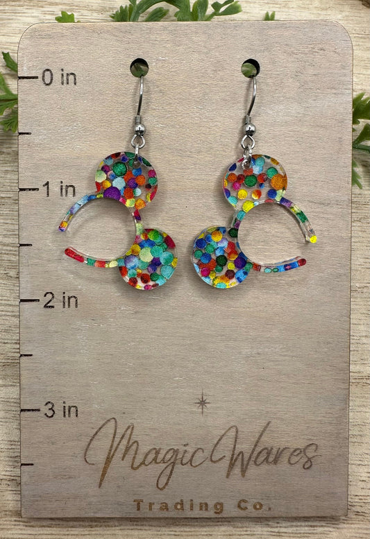 Leopard Mouse, Gem Dangle Earring, Laser Cut Wood Dangle Earrings, Acrylic Gem Dangle, Made to order, Glowforge laser cut