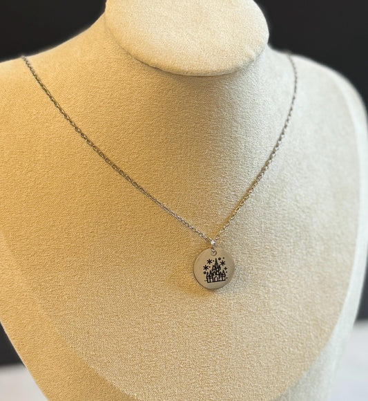 Magical Castle Engraved Stainless Steel Necklace, Silver or Gold Laser Engraved Necklace, Magic Kingdom Inspired, Personalized Jewelry