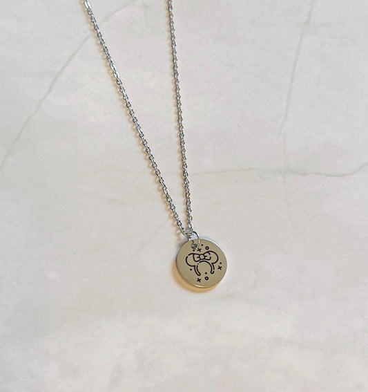Minnie Ears Engraved Stainless Steel Necklace, Silver or Gold Laser Engraved Necklace, Magic Kingdom Inspired, Personalized Jewelry