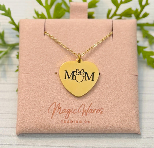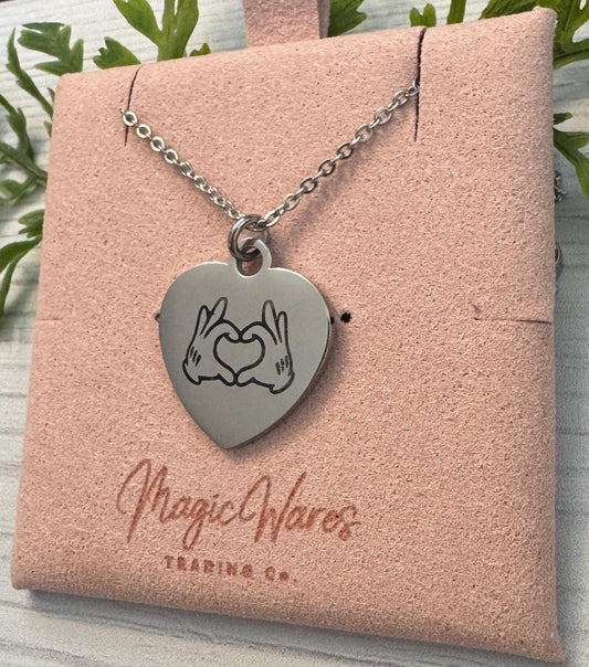 Heart Mickey Hands Engraved Stainless Steel Necklace, Silver or Gold Laser Engraved Necklace, Gift for Mom, Mothers Day Gift