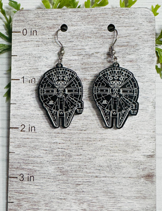 Millennium Flacon Laser cut Acrylic Earrings, Star Wars inspired Dangle earrings, May the Fourth Earrings, Gift for Star Wars fan earrings