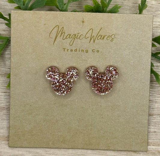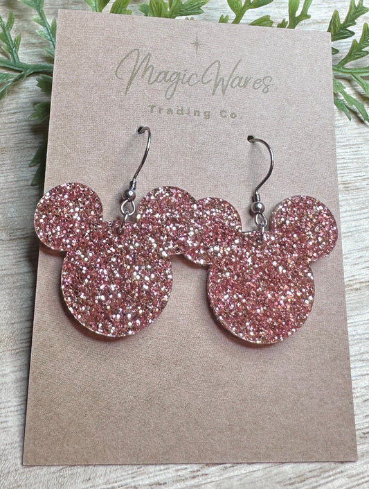 Rose Gold Glitter, Mouse head shaped, Dangle Earrings, Laser cut Glitter Acrylic Earrings, Made to order, Glitter earrings