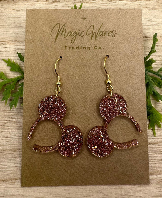 Rose Gold Glitter, Mouse ears headband, Laser cut Rose Gold Glitter Acrylic Earrings, Made to order, Glowforge Earrings