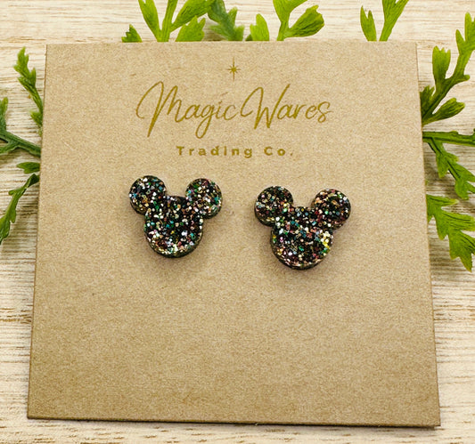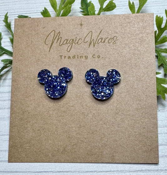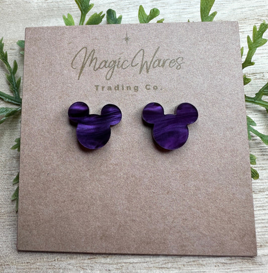 Purple Glitter Stud, Mousehead shaped glitter Post Laser cut Earrings, Pierced Earlobe Stainless Steel Post earrings glitter earrings