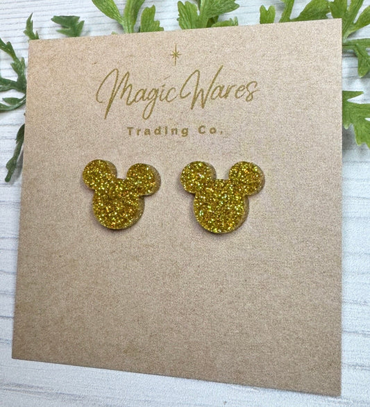 Holographic Gold Glitter Stud, Laser cut fine gold glitter acrylic stud earrings, Pierced earlobe post earrings