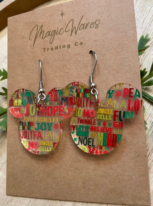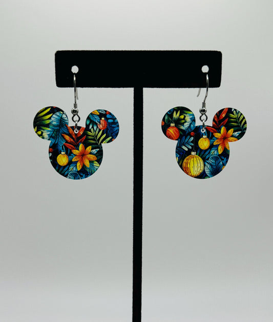 Tropical Holiday Mouse head Dangle Earrings , Laser Cut Translucent patterned Acrylic Earrings, Lightweight Christmas earrings