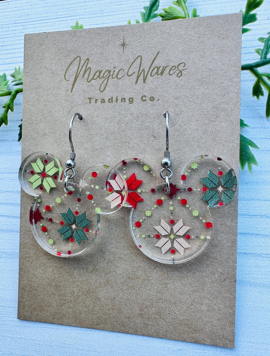 Christmas Poinsettia Mouse, Laser Cut Poinsettia Mandala patterned Crystal Acrylic Earrings, Dangle Earrings, Christmas earrings