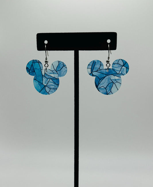 Winter Stained Glass Mouse head Dangle Earrings , Laser Cut Translucent stained glass patterned Acrylic Earrings, Lightweight earrings