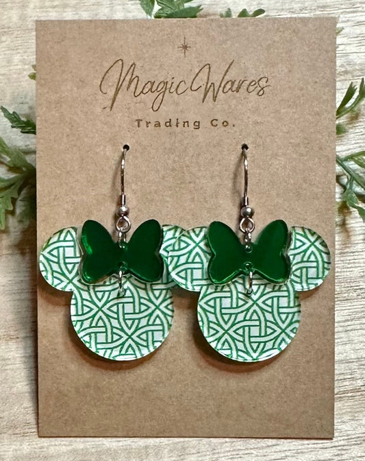 Celtic Knot Minnie Mouse Earrings: Green Mirror Bow, St. Patrick's Day