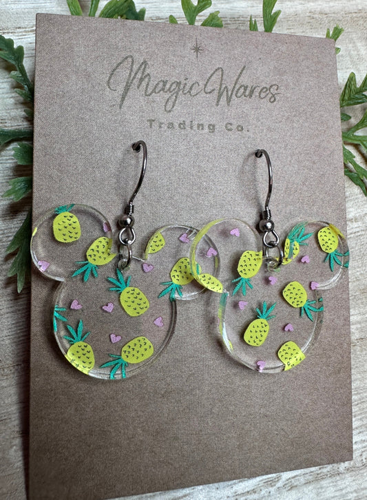 Pineapple Mouse, Laser Cut, pineapple pattern Crystal Acrylic Earrings, Dangle Earrings, Made to order, Glowforge Earrings