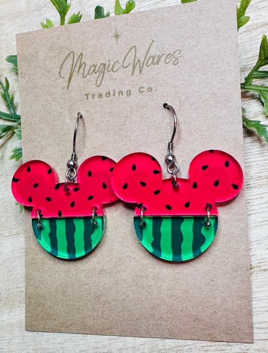 Watermelon Mouse 2 Part Mouse head shaped Watermelon Patterned Crystal Acrylic Earrings Summer earrings