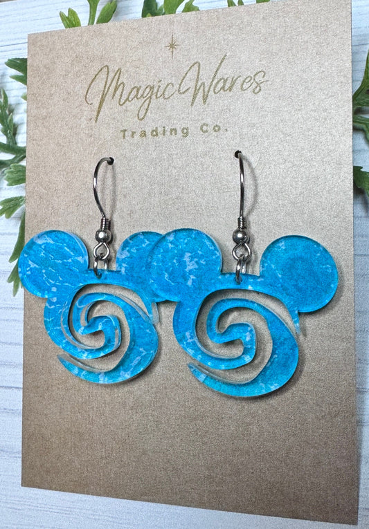 Ocean Wave Moana Inspired Laser Cut Earrings Ocean Water Patterned Crystal Acrylic Dangle Earrings Aulani inspired beach earrings
